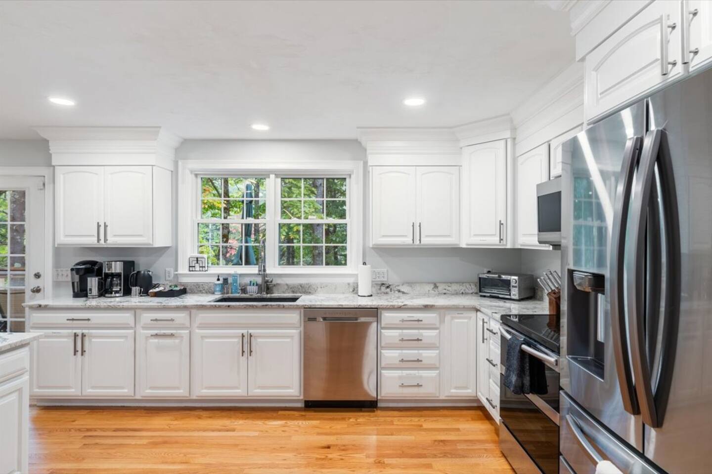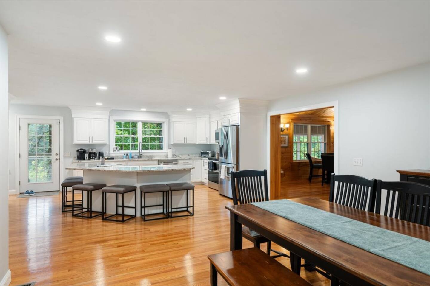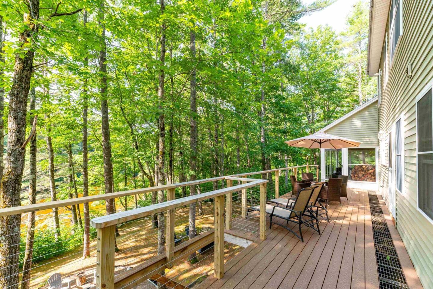 Guests have full access to the entire home, including two spacious living rooms, a chef’s kitchen, and all three levels of living space. Enjoy the sunroom, back deck, covered porch, private backyard, fire pit, and grill. The two-car garage and driveway offer plenty of parking. A private path leads directly to the Saco River and a quiet association-only beach—never too crowded and perfect for relaxing.