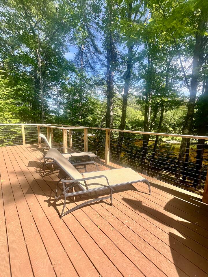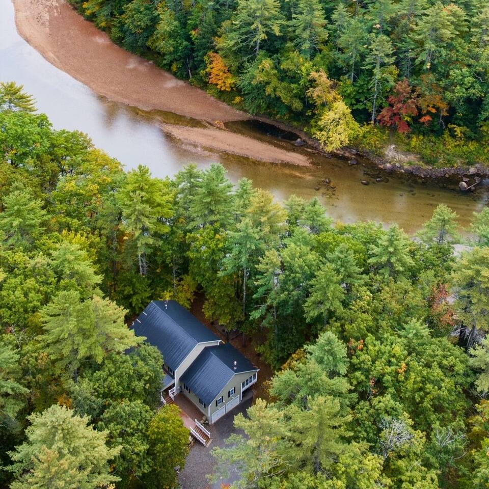 Escape to the Saco River! This stunning riverfront home offers a private association beach, tubing right to the backyard, 2 spacious living rooms, a chef’s kitchen, sunny deck, covered front porch, cozy sunroom, fire pit, and a luxurious king suite. With 3 full bathrooms and room for 10, it’s perfect for families or friends. Just 15 min to North Conway Village, Echo Lake, Diana’s Baths & more—your unforgettable getaway starts here!