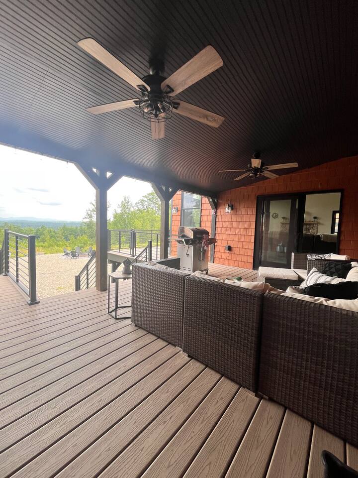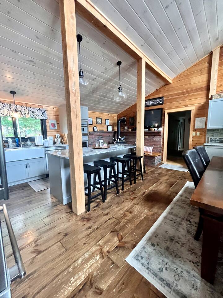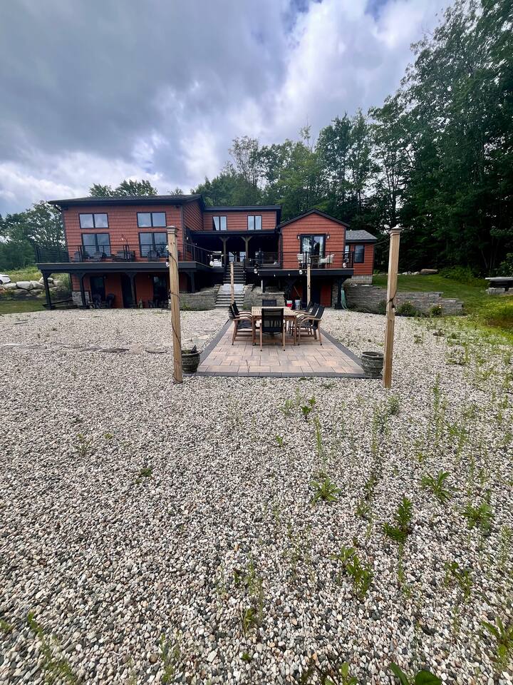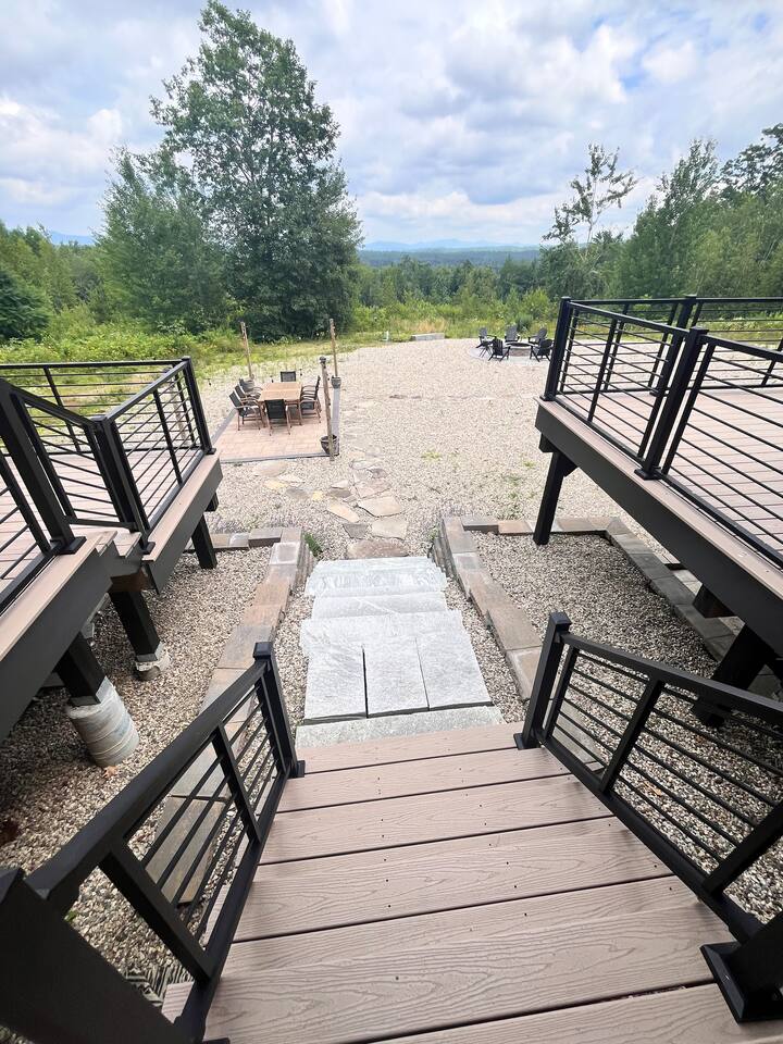 Wake up to stunning mountain views and end the day around the firepit under the stars—this peaceful, updated retreat in Effingham, NH has it all. With a gourmet kitchen, gas fireplace, two living areas, and space to sleep 12, it’s ideal for families or groups. The master suite features its own balcony and ensuite bath, and the whole home is filled with natural light and high-end touches. Pet-friendly and packed with charm—you won’t want to leave!