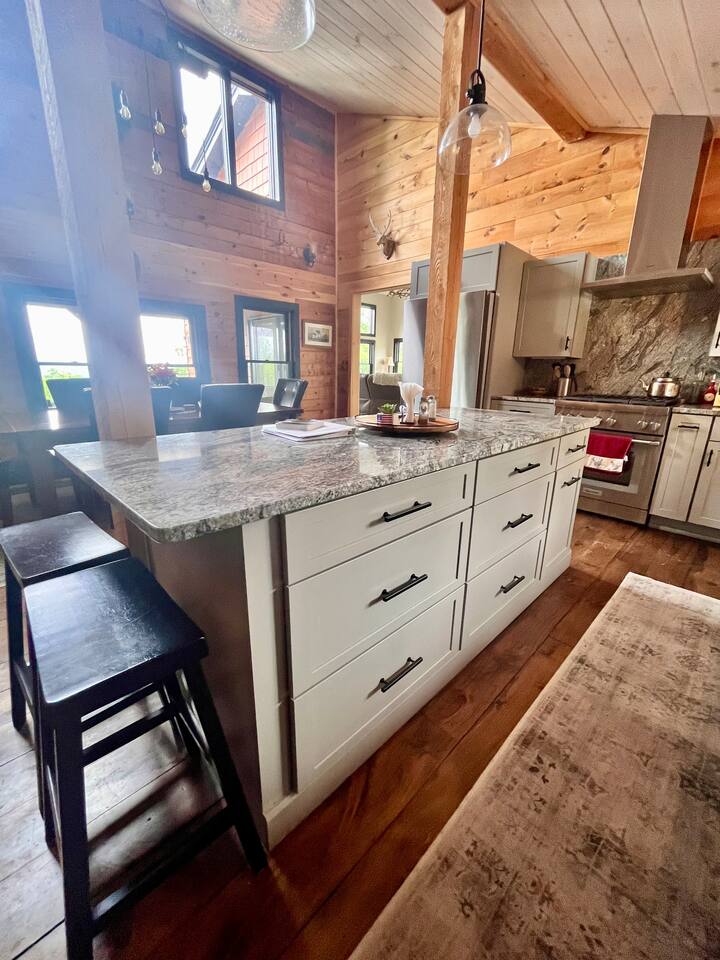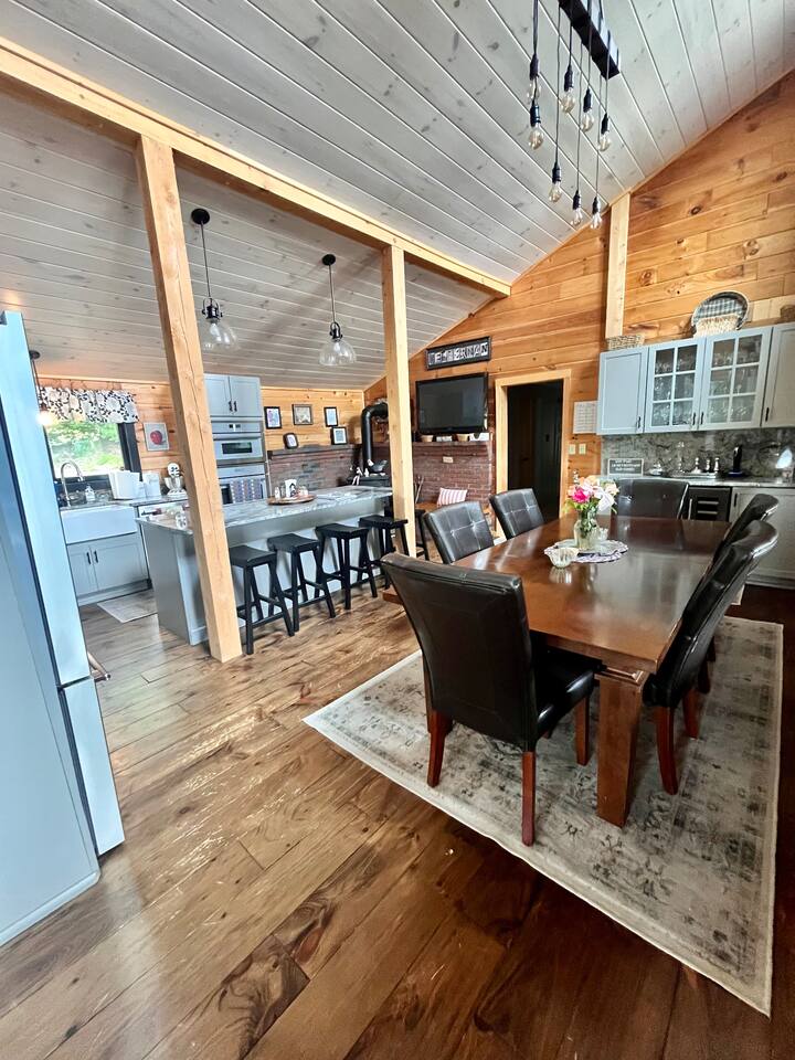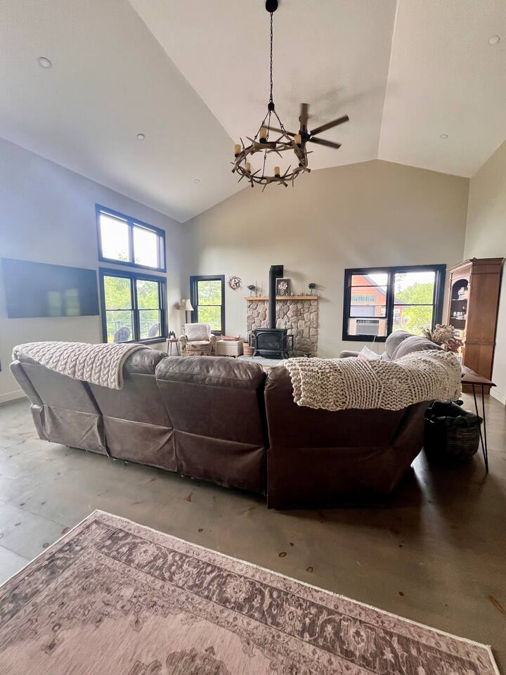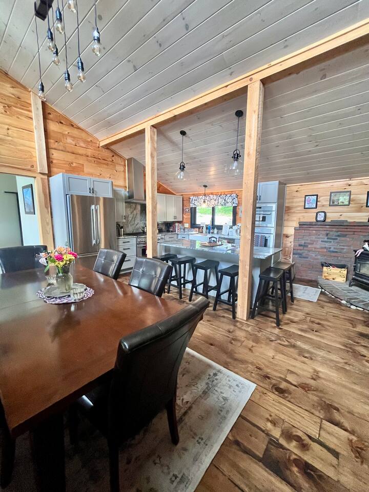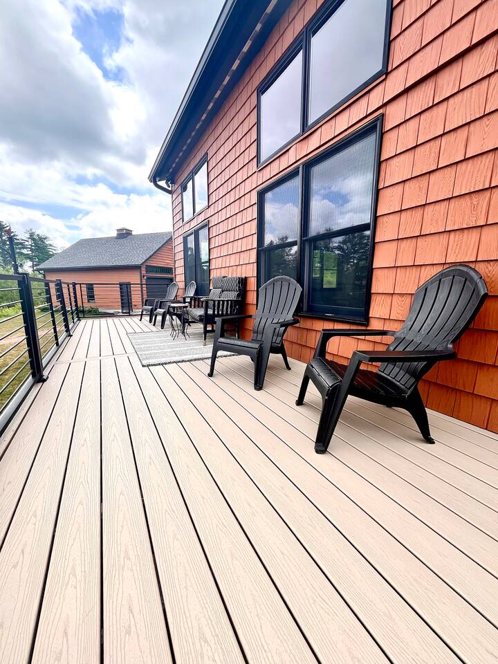 Wake up to stunning mountain views and end the day around the firepit under the stars—this peaceful, updated retreat in Effingham, NH has it all. With a gourmet kitchen, gas fireplace, two living areas, and space to sleep 12, it’s ideal for families or groups. The master suite features its own balcony and ensuite bath, and the whole home is filled with natural light and high-end touches. Pet-friendly and packed with charm—you won’t want to leave!