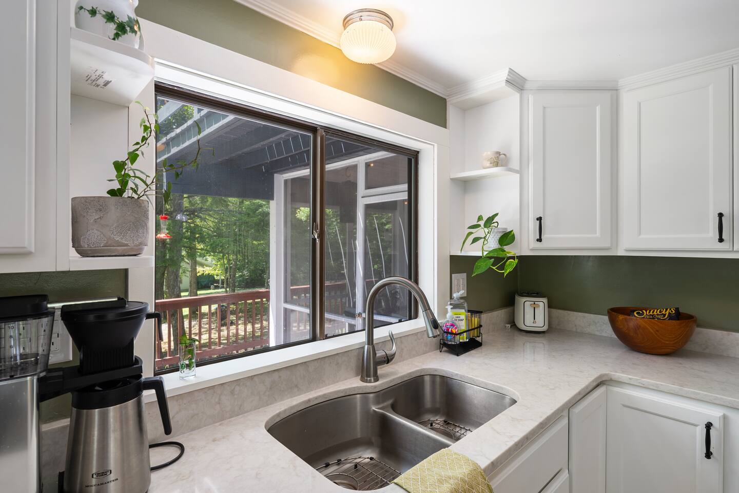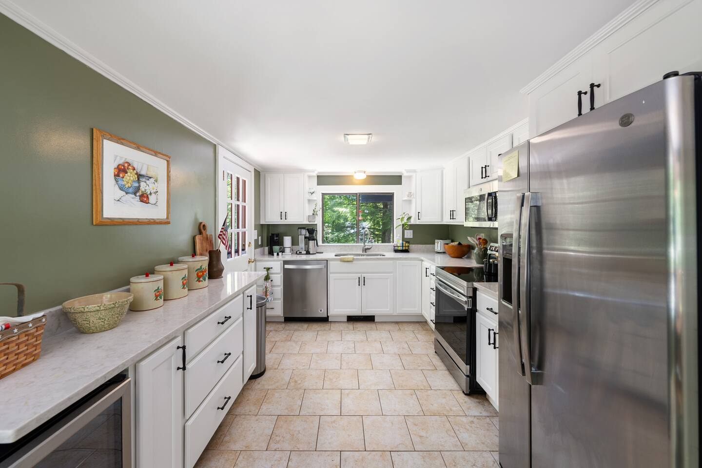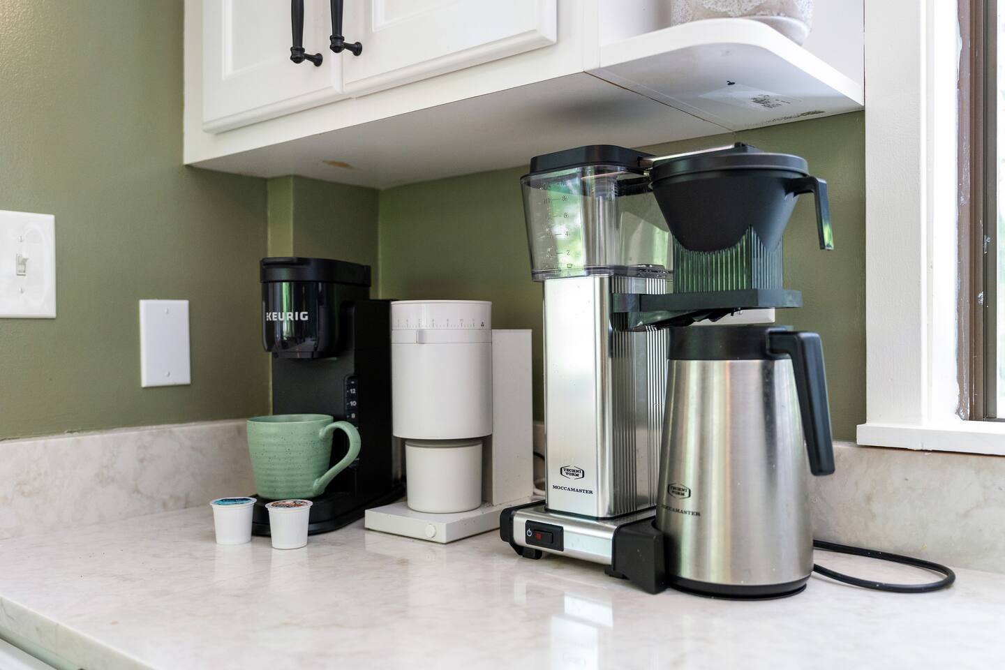☕ Coffee lovers are covered! The home includes a Keurig coffee maker (with a few starter K-Cups, creamer, and sugar provided), a French press, and a regular drip coffee maker with filters.