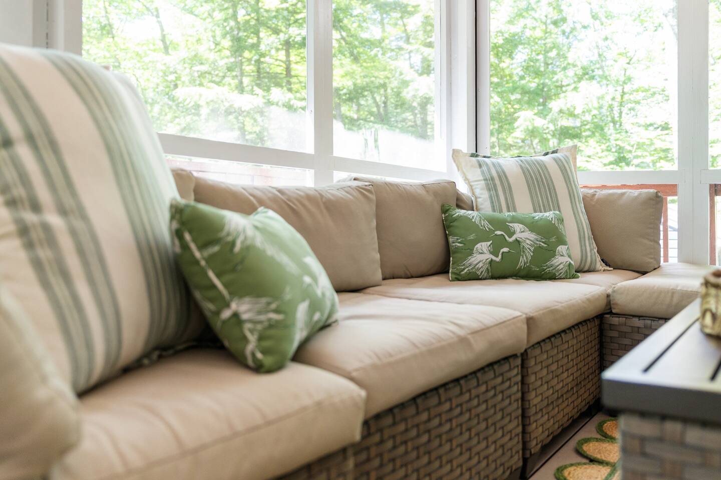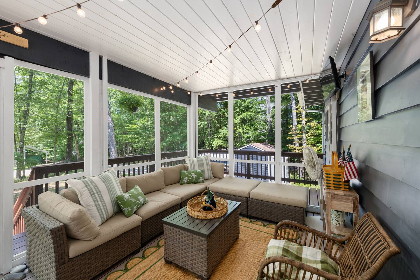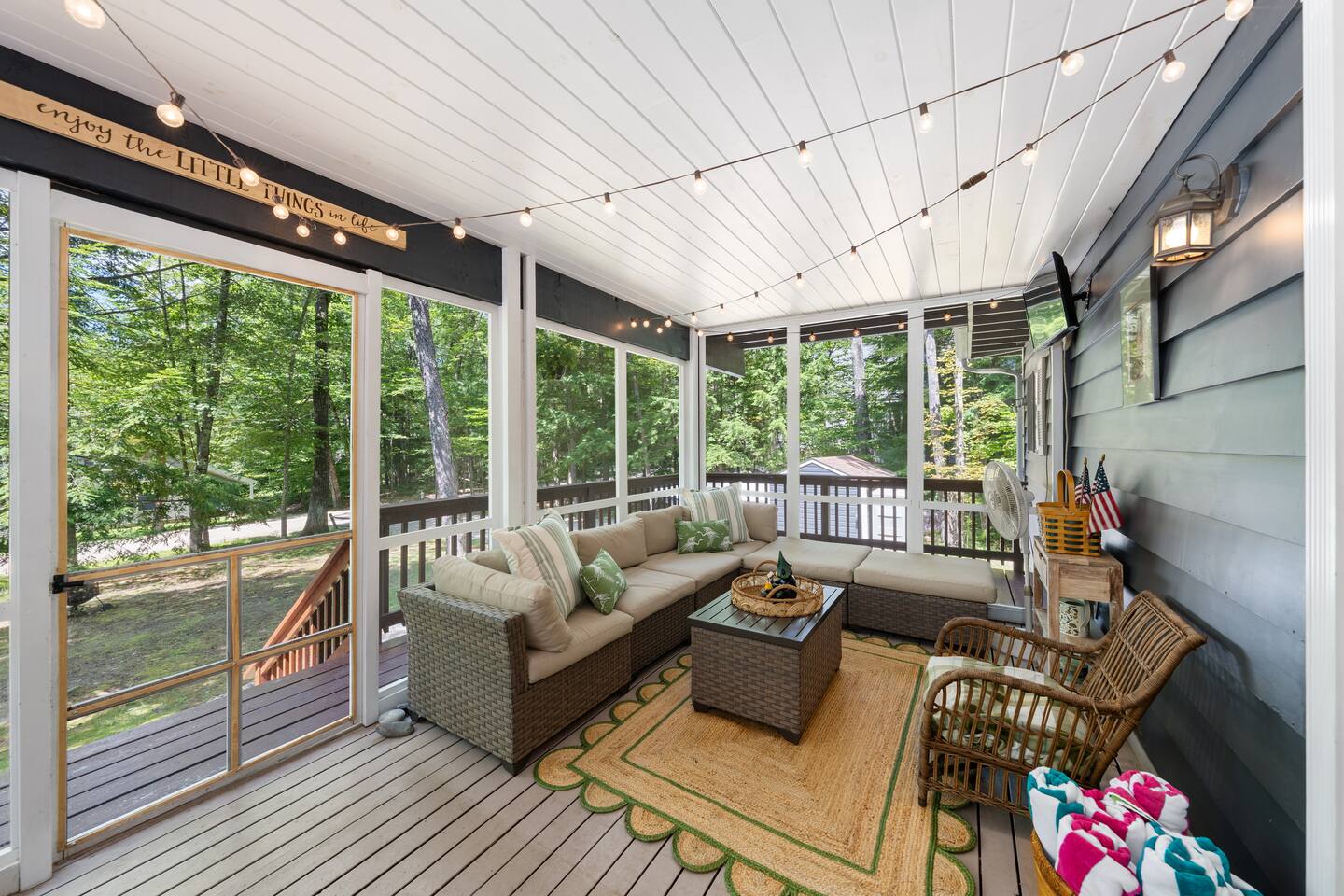 The screened-in porch and large wrap-around deck
